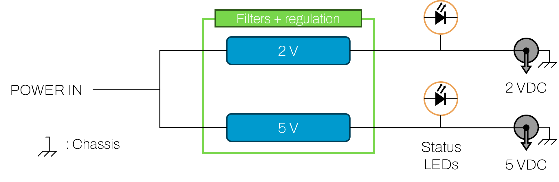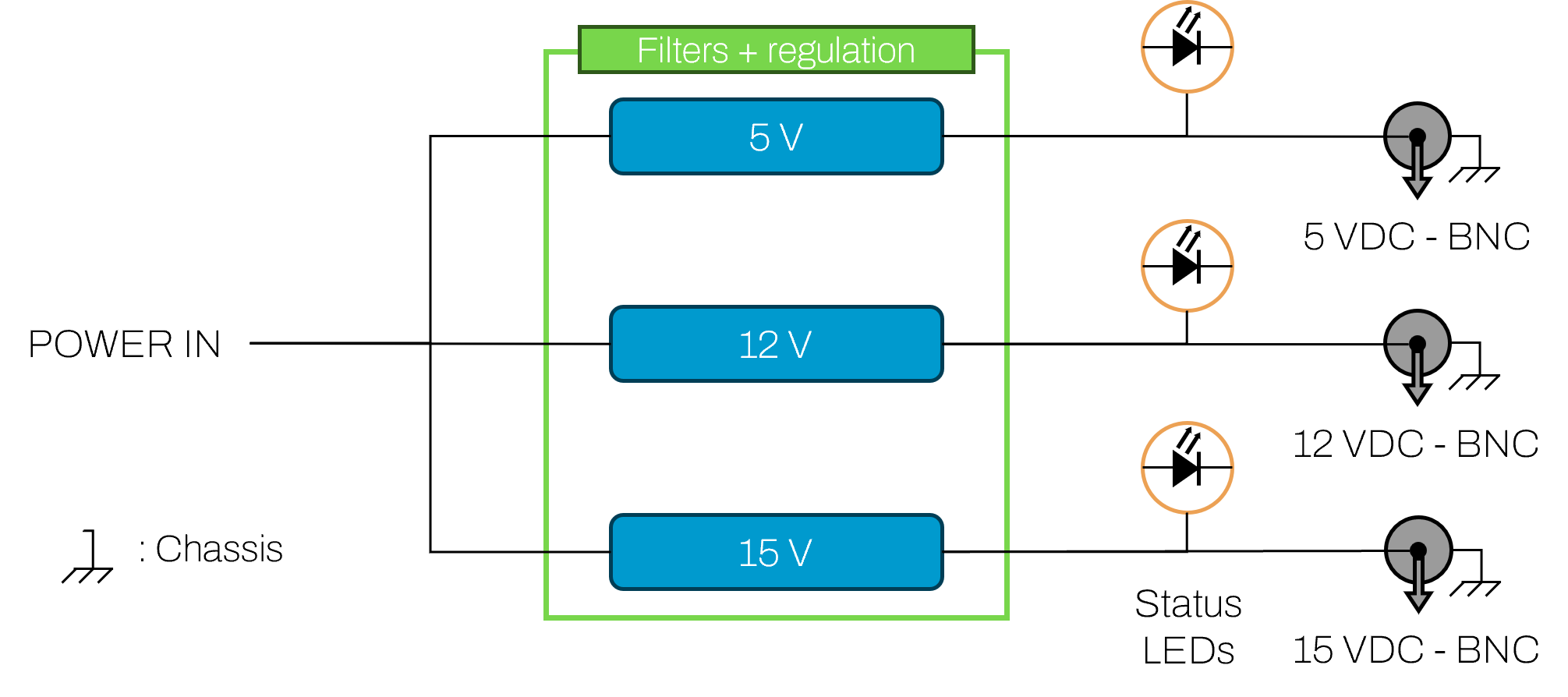 The functional diagram is a simple view of what the instrument does. It enables a fast and simple understanding of the internal functionalities in respect to the system inputs and outputs.