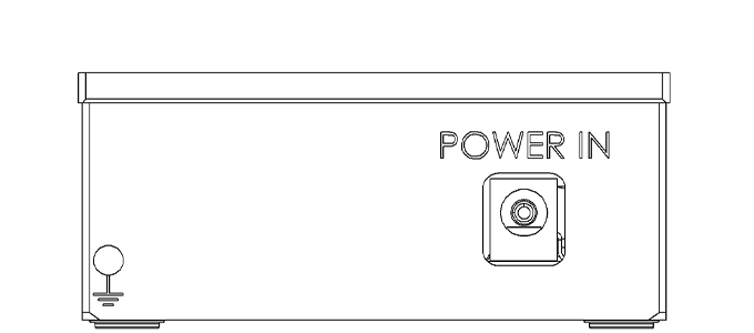 The dimensions of the device are presented here with a simplified view. It also shows the connections from the front and back view of the instrument.